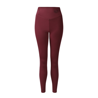 - Form fitting stretch power legging with high rise supportive self fabric waistband.